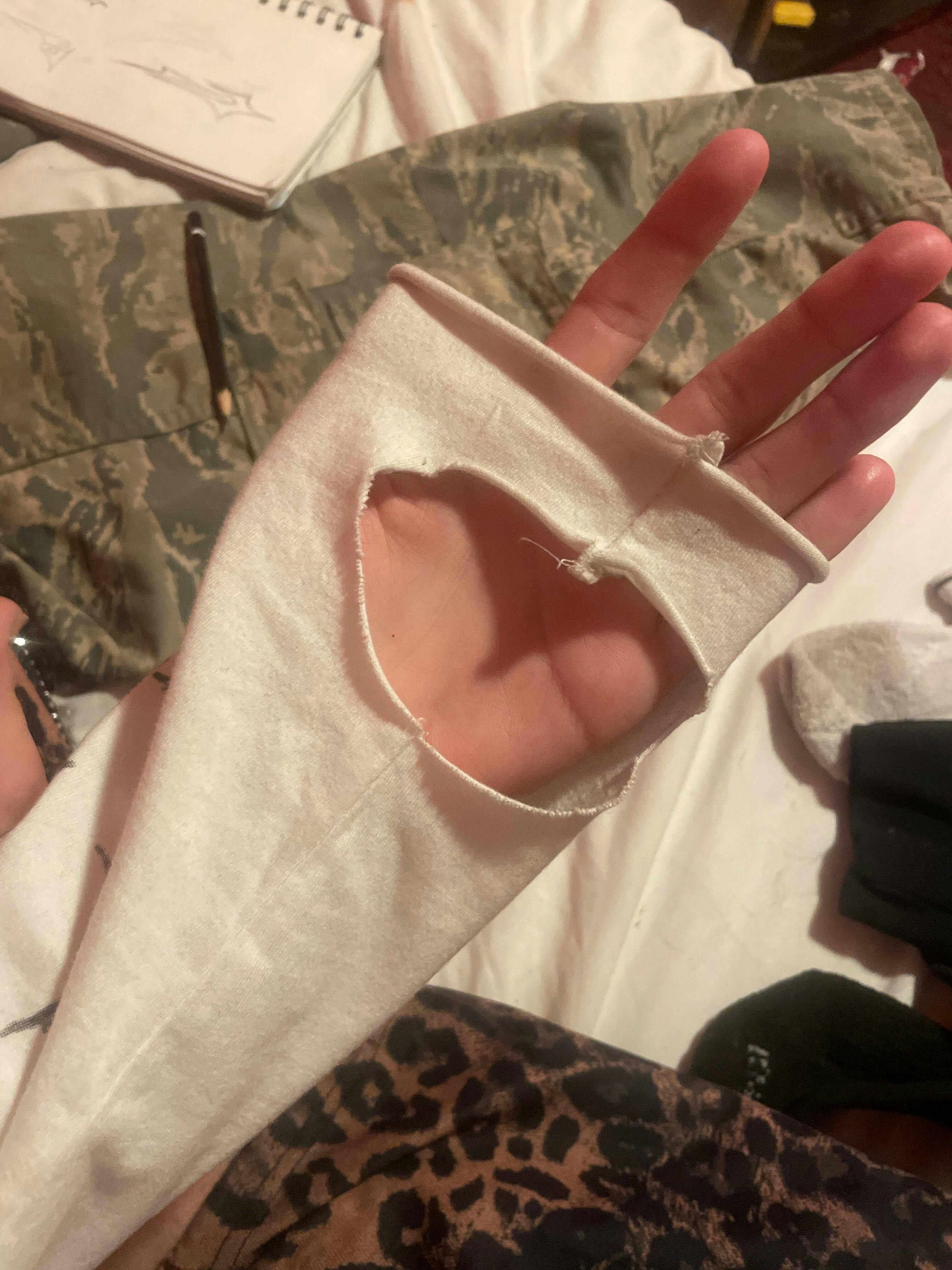 Goated shirt overall. design, masterpiece. Fit, perfectly baggy. Design flaws, why the hell would you cut off the hem on both the bottom and the sleeves of the shirt. And who in their right mind cut these thumb holes (it came like that in the image)
