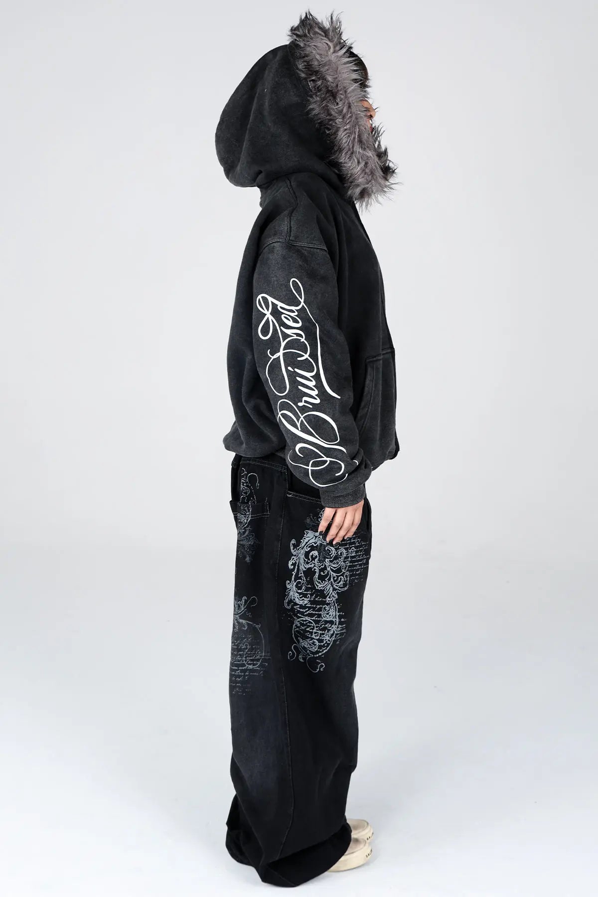 Scripture hoodie came with white/yellow fur rather than being a “lighter shade”. The color of the hoodie itself came a shade lighter compared to the one on the website even though that’s not mentioned in the description. Material on the inside of the hoodie also felt pretty cheap/lightweight.